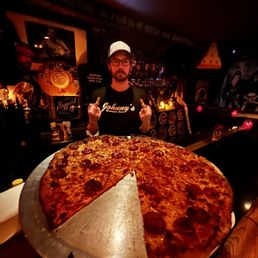 This diamond in the rough is hidden in the corner of a strip mall in Huntington Beach off of Beach Blvd. I can only describe this unique gem as a punk rock Disneyland on acid. There are things to look at everywhere you go. The Bartenders are friendly and have a heavy pour. The cherry on top is they have some of the best pizza I've ever had. My favorite is the " I want to be sedated". I know other pizzas are good, but I cannot get away from this one it's so delicious. I'm told It's a Croatian style pizza. Whatever style it has a crust that you won't leave on the plate. Come one come all and enjoy everything that Johnny's house to offer.