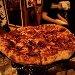 This place is friendly & Fun! The bar is mixed eclectic Johnny Cash & Haunted Mansion vibe with great Artisan Pizza . Drinks are strong too.