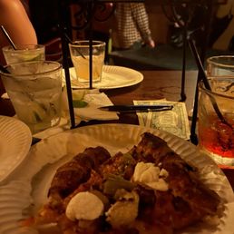 This is a hidden gem my friends introduced me too ! I love this place the atmosphere the ambience is so cute dimmed and the music is just perfect ! The drinks are super good and not expensive at all the bartenders are amazing at what they do and they are really cool ! Now the PIZZA we ordered was chef's kiss !! The best pizza hands down !! Soo delicious ! I need to go back soon ! We all had an amazing experience overall ! If you haven't checked them out you need to stop by ! At least for that pizza